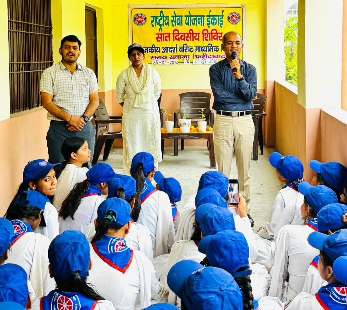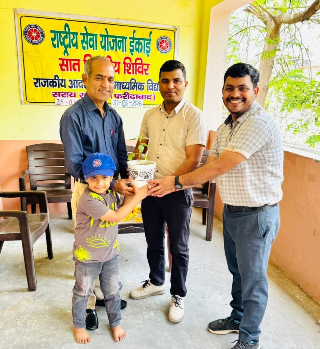राजकीय वरिष्ठ माध्यमिक विद्यालय सराय ख्वाजा फरीदाबाद में चल रहे सात दिवसीय एनएसएस शिविर का आज अंतिम दिवस था। दिन की शुरुआत स्वयंसेवकों ने योगाभ्यास और राष्ट्रीय गीत के साथ की। समापन समारोह में आज के मुख्य अतिथि शिक्षाविद और पूर्व प्राचार्य रविंद्र कुमार मनचंदा जी रहे। मुख्य अतिथि का स्वागत प्रोग्राम ऑफिसर सीमा, प्रवीन कुमार और सुनील कुमार द्वारा किया गया। स्वयंसेवकों ने इस सात दिवसीय शिविर के बारे में अपने अनुभव सांझे किए और सांस्कृतिक प्रस्तुतियां दी।